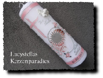 Taufkerze altrosa Foto Trend Kreuz Ranke Herz Sterne lila weiß silber